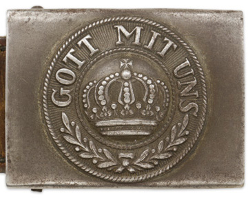 G000191 M1915 PRUSSIAN EM/NCO'S BELT BUCKLE WITH LEATHER TAB. |