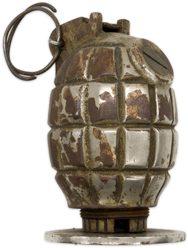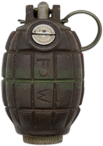 C031394 CANADIAN NO.36M MK. I "MILLS BOMB" GRENADE WITH GAS CHECK PLATE (Inert/Deactivated). |