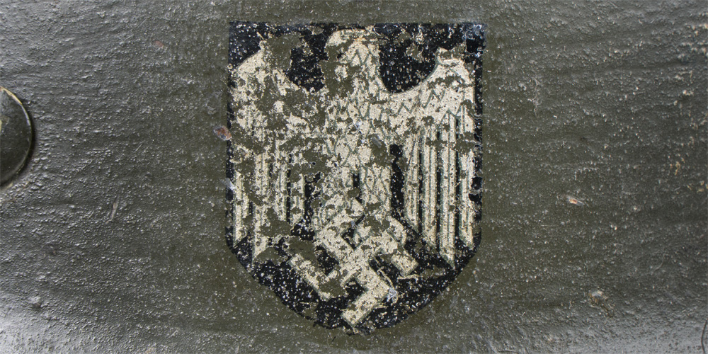 BACKGROUND: The first "modern" steel helmets were introduced by the French army in early 1915 and were shortly followed by the British army later that year. With plans on the drawing board, experimental helmets in the field, ("Gaede" helmet), and some captured French and British helmets the German army began tests for their own steel helmet at the Kummersdorf Proving Grounds in November, and in the field in December 1915. An acceptable pattern was developed and approved and production began at Eisen-und Hüttenwerke, AG Thale/Harz, in the spring of 1916. These first modern M16 helmets evolved into the M18 helmets by the end of WWI. The M16 and M18 helmets remained in usage through-out the Weimar Reichswehr era and on into the early years of the Third Reich until the development of the smaller, lighter M35 style helmet in June 1935. In an effort to reduced construction time and labor costs minor modifications were introduced in March 1940 resulting in the M40 helmet. Further construction modifications were undertaken in August 1942 resulting in the M42 helmet. Originally the Third Reich national tri-color helmet decal was introduced on March 14TH 1933 for wear on the left side of the helmet to replace the Reichswehr era state shield insignia. Regulations of February 17TH 1934 introduced the Wehrmacht eagle decal and the national tri-color decal was shifted to the right side of the helmet with the Wehrmacht eagle decal positioned on the left hand side. Regulations of March 21ST 1940 dictated that the national tri-color decal was to be removed from all helmets and further regulations of August 28TH 1943 abolished the Wehrmacht eagle decal and dictated that it was also to be removed from all helmets although the directives were not completely adhered to.