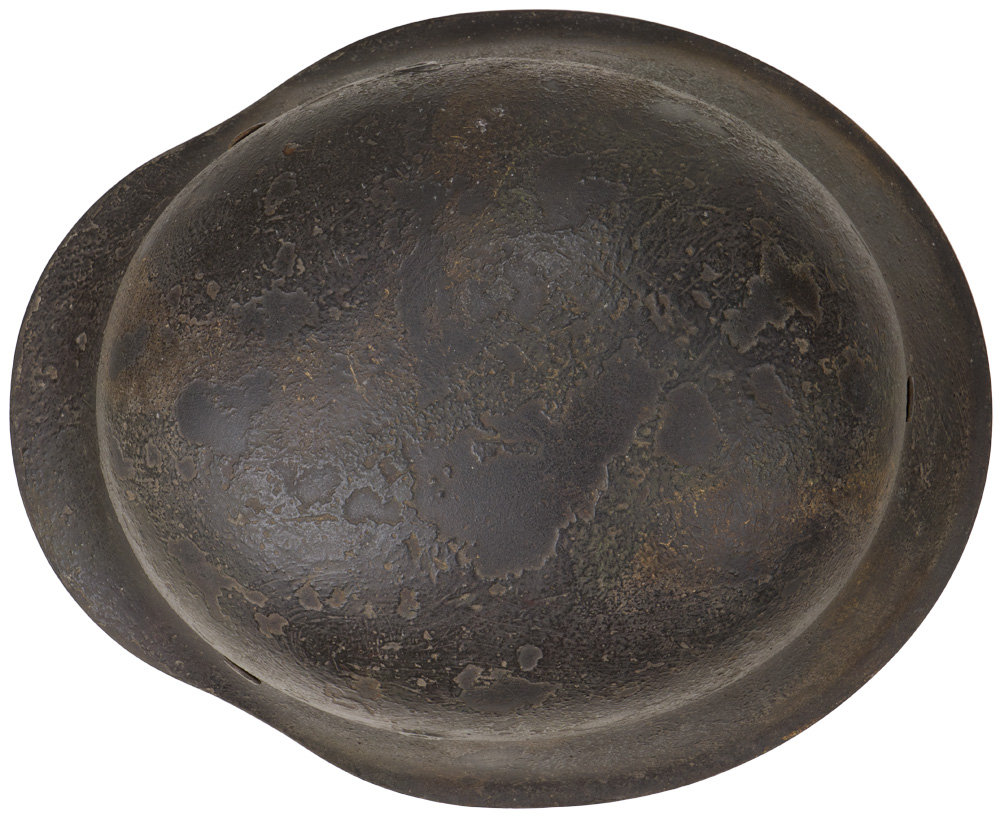 BACKGROUND: The first "modern" steel helmets were introduced by the French army in early 1915 and were shortly followed by the British army later that year. With plans on the drawing board, experimental helmets in the field, ("Gaede" helmet), and some captured French and British helmets the German army began tests for their own steel helmet at the Kummersdorf Proving Grounds in November, and in the field in December 1915. An acceptable pattern was developed and approved and production began at Eisen-und Hüttenwerke, AG Thale/Harz, in the spring of 1916. These first modern M16 helmets evolved into the M18 helmets by the end of WWI. The M16 and M18 helmets remained in usage through-out the Weimar Reichswehr era and on into the early years of the Third Reich until the development of the smaller, lighter M35 style helmet in June 1935. In an effort to reduced construction time and labor costs minor modifications were introduced in March 1940 resulting in the M40 helmet. Further construction modifications were undertaken in August 1942 resulting in the M42 helmet. Originally the Third Reich national tri-color helmet decal was introduced on March 14TH 1933 for wear on the left side of the helmet to replace the Reichswehr era state shield insignia. Regulations of February 17TH 1934 introduced the Wehrmacht eagle decal and the national tri-color decal was shifted to the right side of the helmet with the Wehrmacht eagle decal positioned on the left hand side. Regulations of March 21ST 1940 dictated that the national tri-color decal was to be removed from all helmets and further regulations of August 28TH 1943 abolished the Wehrmacht eagle decal and dictated that it was also to be removed from all helmets although the directives were not completely adhered to.