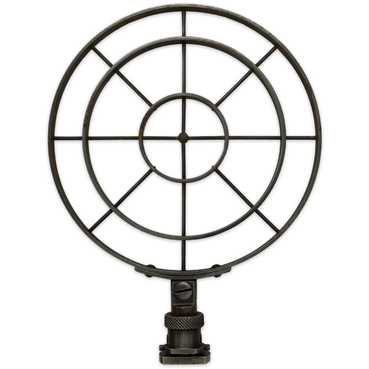 PHYSICAL DESCRIPTION: Roughly, 11cm diameter, blued, finely tooled steel construction MG34 anti aircraft sight used in conjunction with the standard tripod (Lafette 34) or the anti aircraft tripod, (Dreifuß 34). The sight consists of three concentric rings with a central vertical and horizontal bar running through all three rings and creating the crosshairs at the center. The sight also has four diagonally angled retaining bars that pass through the two outer rings. The bottom center of the sight has a attachment clip to attach the sight to the MG34.