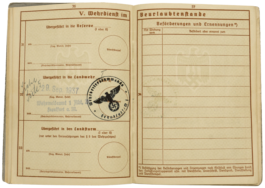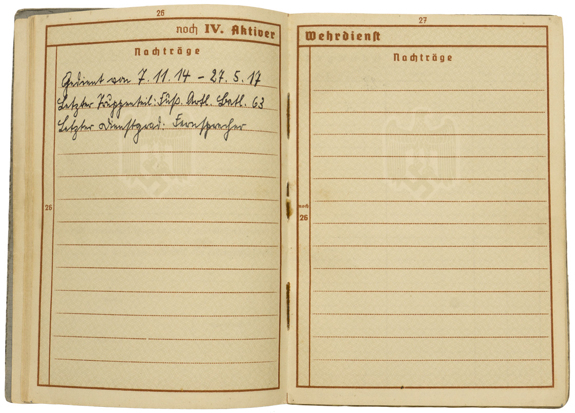 PHYSICAL DESCRIPTION: First pattern (1934-1938) Wehrpass with photo of owner. All pages with entries are photographed.