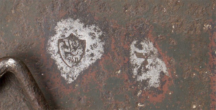 BACKGROUND: The high explosive, concussion, M24 stick grenade was a modification of the WWI German M1915 stick grenade and was to become the most common grenade used by Germany during WWII. Modifications of the M24 resulted in the longer M39 grenade in 1939 and the M43 grenade with a different fuze insertion configuration in 1943. The M24, M39 and M43 grenades were all armed with TNT with a four to five second time delay fuse and had an effective radius of approximately twelve to fourteen yards. Of Note: Observations on the Russian front of the effectiveness of the Russian RGD33 grenade with fragmentation sleeve led the Germans to copy the idea and develop their own grenade fragmentation sleeve. The first German fragmentation sleeve was a smooth version introduced by the Waffen SS, (Armed SS), Waffen und Geräteamtes, (Weapons and Equipment Office), under command of SS Oberführer Heinrich Gärtner in mid 1942. Shortly after the introduction of the Waffen SS fragmentation sleeve the army’s HwaA, followed suit by developing a serrated version of the fragmentation grenade although both patterns were used by both organizations. The fragmentation sleeves were originally designed to friction fit on the head of the stick grenade altering it from a purely concussion weapon to a more damaging fragmentation weapon. The fragmentation sleeves could be utilized with any of the three stick grenade models, StiGr. M24, M39 and M43. Also Of Note: Regulations of December 9TH 1943 ordered that one third of all stick grenades be furnished with the fragmentation sleeves. The development and production of German army ordnance was under the supervision of the HwaA, Heereswaffenamt, (Army Ordnance Office), or the H.Fzm, Heeresfeldzeugmeisterei, (Army Ordnance Department), both designations were used, which was a subsection of the OKH, Oberkommando des Heeres, (High Command of the Army), and was responsible for testing, evaluation and eventual issue of all ordnance. The HwaA would issue all ordnance to a units Quartiermeister, (Supply HQ unit/Quartermaster), which contained the units Administration, Medical, Veterinarian, and Transport officers and its main responsibility was the control of all supplies to the forward troops including all vehicle fuel, and lubricant requirements as well as animal feed and rations and ammunition and accessories. All three versions of the stick grenades with accessories were generally distributed by the HwaA/HFzm in specific sheet metal cases although assorted wooden cases were also utilized.