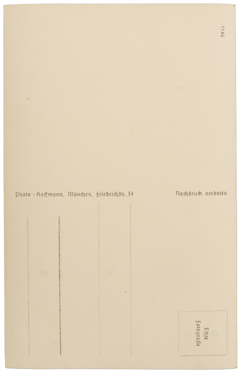 A standard size, 10.5cm x 15cm black and white portrait photograph postcard that has not been posted or used. Portrait photograph taken by Hoffmann.