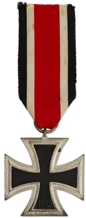 BACKGROUND: On March 10TH 1813, Prussian King Friedrich Wilhelm III established the Iron Cross as a temporary award for bestowal during times of war. Originally the Iron Cross was introduced in three grades with a Grand Cross intended for award to Senior Commanders for successfully leading troops in combat and the First and Second classes for award to all ranks for bravery or merit in action. The Iron Cross’s were reinstituted by King Wilhelm I on July 19TH 1870 for award during the Franco-Prussian War and again on August 5TH 1914, by King Wilhelm II for award during WWI. On September 1ST 1939 Hitler once more reinstituted the Iron Cross series of awards in the First and Second Classes and established the Knight’s Cross of the Iron Cross. The second class medal was for award to personnel who performed a single act of bravery in combat.