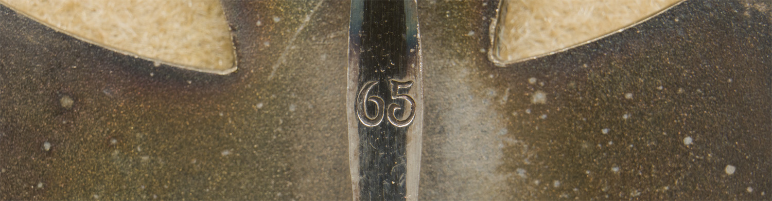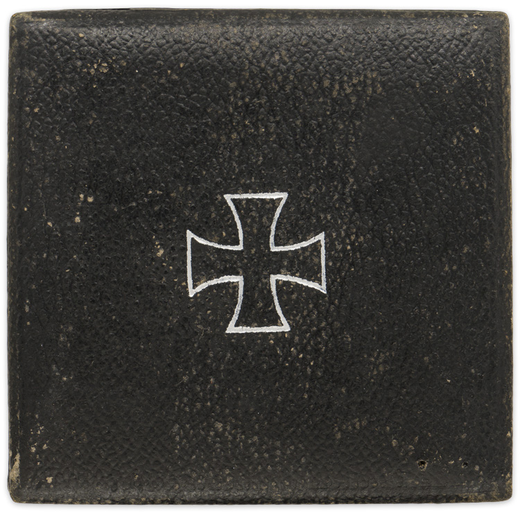PHYSICAL DESCRIPTION: 1939 pattern, die struck, three piece, iron and alloy construction Patté style cross with a single piece iron core and two piece alloy frame. The obverse of the award features an embossed, central, canted, swastika with re-institution date, "1939", to the bottom arm. The swastika is in nice high relief while the date is somewhat lower. The award has a plain reverse. The plain reverse of the award has a solid, soldered hinge, a broad, thick, tapered, vertical pin and catch all intact. Well marked with the stamped, manufacturer’s numerical code, "65", indicating manufacture by Klein & Quenzer Idar/Oberstein. Nice original case.