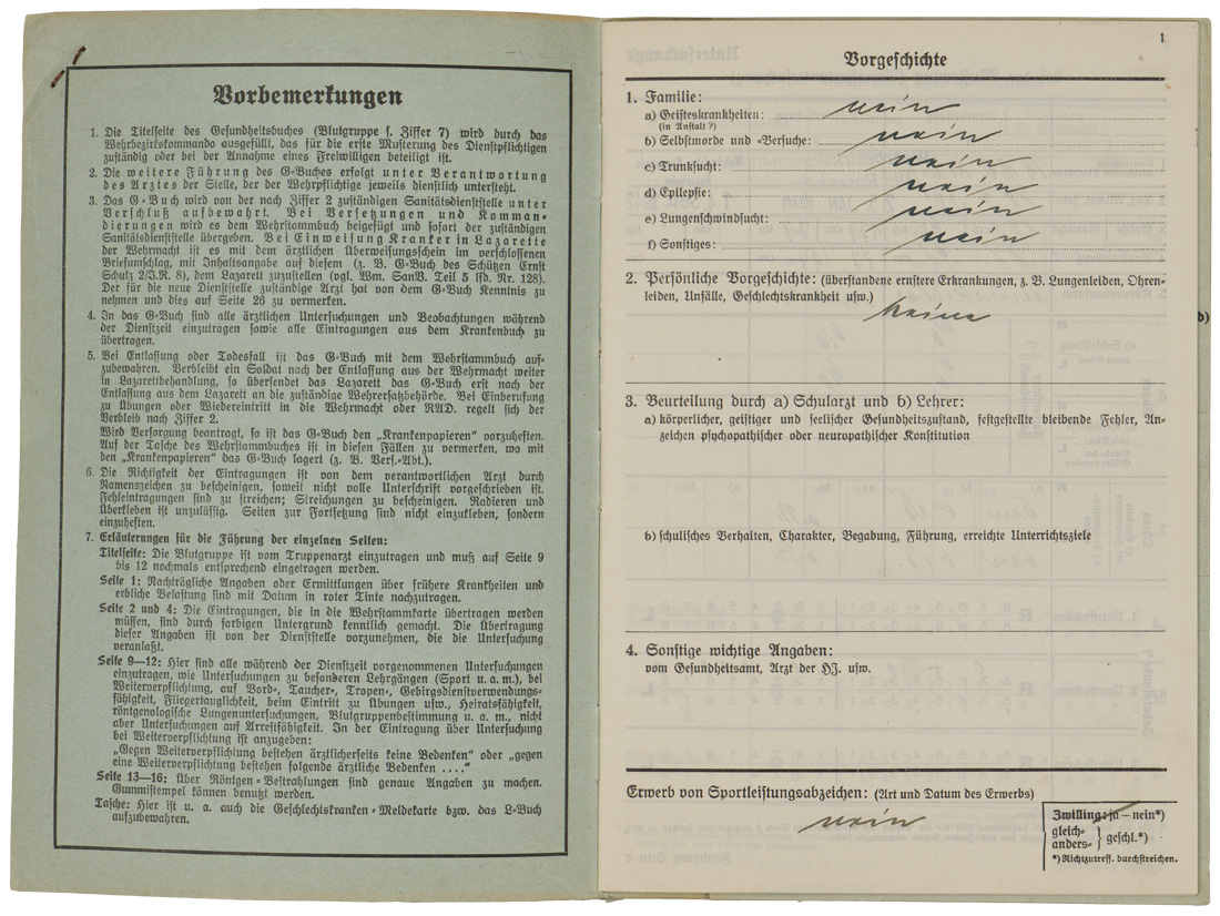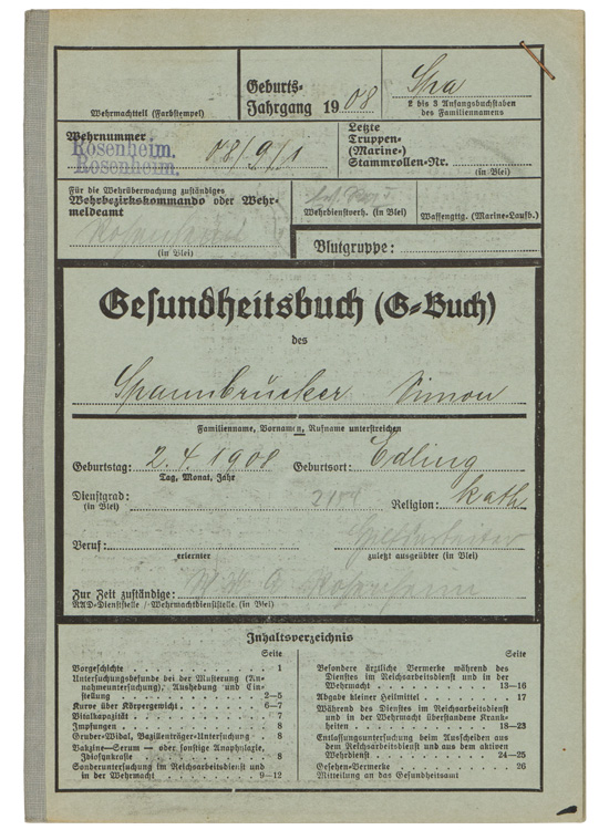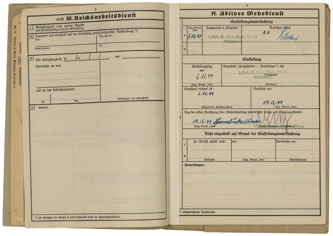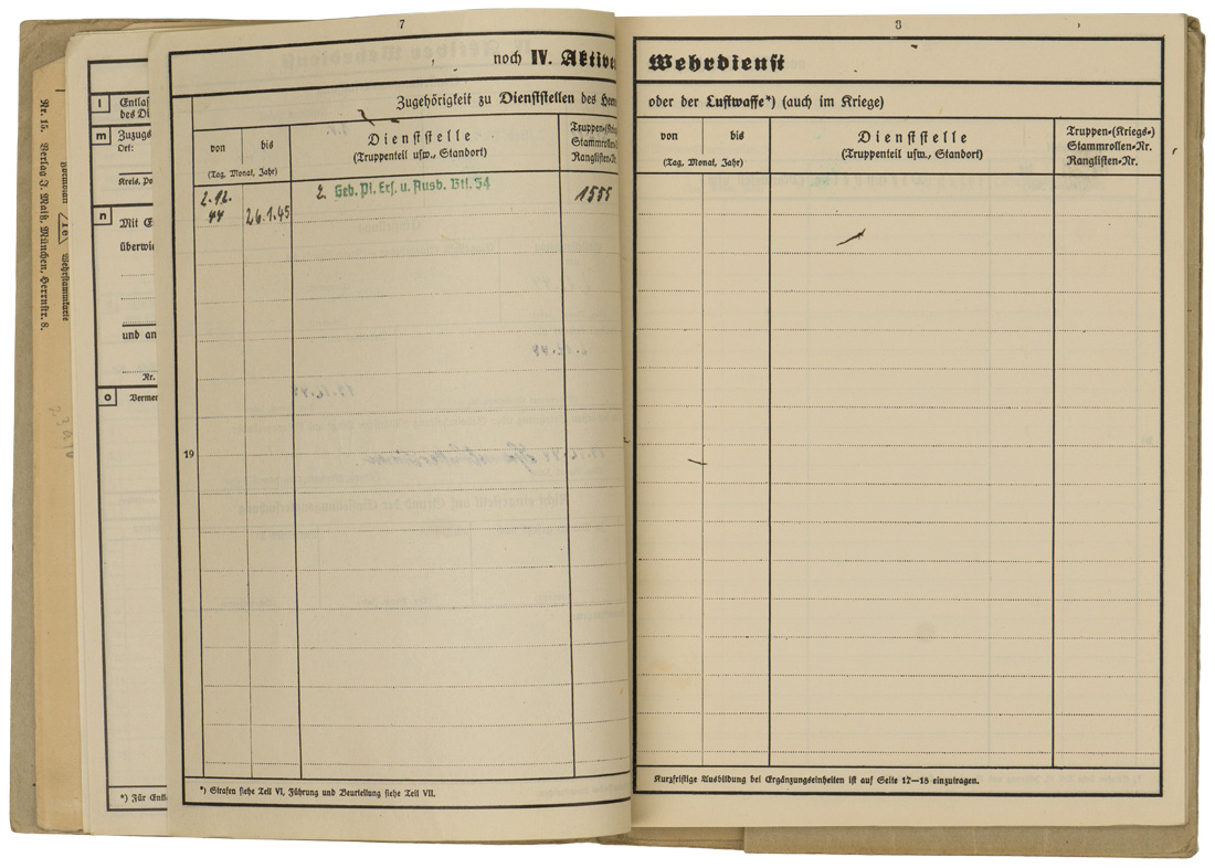 H011394 SOLDIER’S SERVICE RECORDS. (Wehrstammbuch)