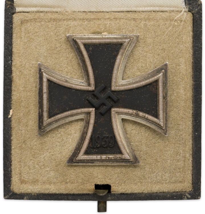 BACKGROUND: On March 10TH 1813, Prussian King Friedrich Wilhelm III established the Iron Cross as a temporary award for bestowal during times of war. Originally the Iron Cross was introduced in three grades with a Grand Cross intended for award to Senior Commanders for successfully leading troops in combat and the First and Second classes for award to all ranks for bravery or merit in action. The Iron Crosses were reinstituted by King Wilhelm I on July 19TH 1870 for award during the Franco-Prussian War and again on August 5TH 1914, by King Wilhelm II for award during WWI. On September 1ST 1939 Hitler once more reinstituted the Iron Cross series of awards in the First and Second Classes and established the Knight’s Cross of the Iron Cross. The first class medal was for award to personnel who performed three to five acts of bravery in combat and had already been awarded the Iron Cross second class.
