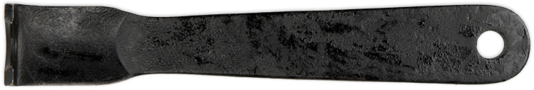 PHYSICAL DESCRIPTION: Blued, tooled steel construction spanner style wrench is roughly, 13cm long, with a 20mm wide, central handle. The wrench has a roughly, 20mm wide rectangular head to one end with a raised lip with a semi-circular cut-out. The wrench is well marked with deeply stamped manufacturers code, "bhm", indicating manufacture by Gustav Auerswald Besteckfabrik Grünhain. Currently covered in a protective oil.