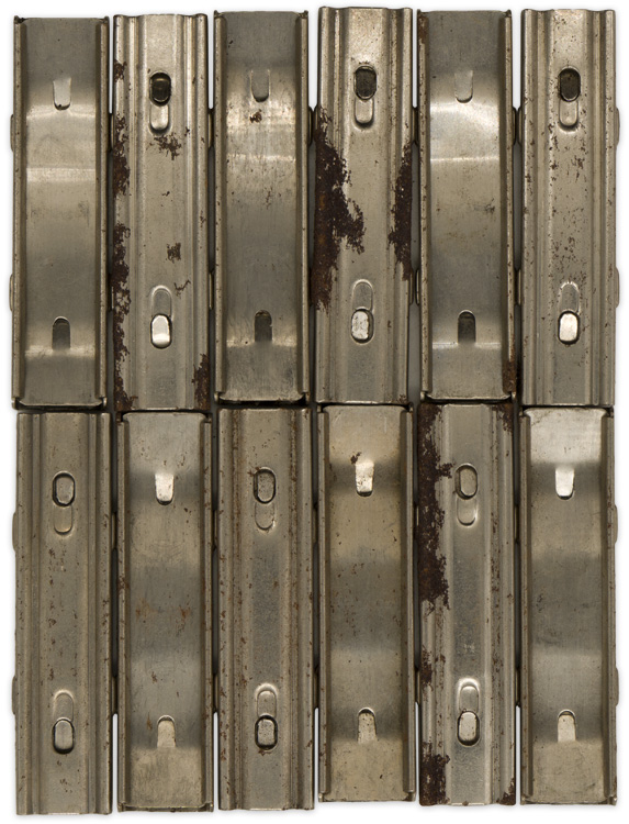 The K98 stripper clips were designed to hold five 7.92mm cartridges to feed the internal magazine. Stamped, two piece, slightly curved, polished, natural, magnetic sheet metal construction clips are roughly 2 3/8" long and 5/8" wide with 3/16" tall side panels. Interior of clips have a separate spring steel insert which applied pressure to the base of the cartridges securing them in the clip. Unmarked examples. Of Note: Early production clips were manufactured of brass and later production clips were manufacture of sheet metal.