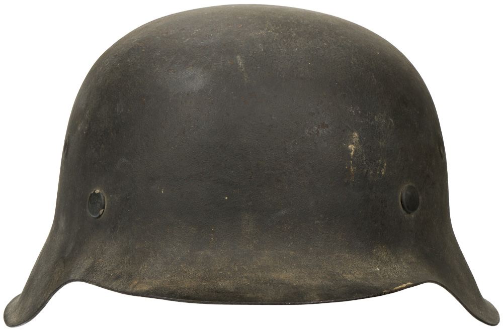 BACKGROUND: The first "modern" steel helmets were introduced by the French army in early 1915 and were shortly followed by the British army later that year. With plans on the drawing board, experimental helmets in the field, ("Gaede" helmet), and some captured French and British helmets the German army began tests for their own steel helmet at the Kummersdorf Proving Grounds in November, and in the field in December 1915. An acceptable pattern was developed and approved and production began at Eisen und Hüttenwerke, AG Thale/Harz, in the spring of 1916. These first modern M16 helmets evolved into the M18 helmets by the end of WWI. The M16 and M18 helmets remained in usage through out the Weimar Reichswehr era and on into the early years of the Third Reich until the development of the smaller, lighter M35 style helmet in June 1935. In an effort to reduced construction time and labor costs minor modifications were introduced in March 1940 resulting in the M40 helmet. Further construction modifications were undertaken in August 1942 resulting in the M42 helmet. Originally the Third Reich national tri color helmet decal was introduced on March 14TH 1933 for wear on the left side of the helmet to replace the Reichswehr era state shield insignia. Regulations of February 17TH 1934 introduced the Wehrmacht eagle decal and the national tri color decal was shifted to the right side of the helmet with the Wehrmacht eagle decal positioned on the left hand side. Regulations of March 21ST 1940 dictated that the national tri color decal was to be removed from all helmets and further regulations of August 28TH 1943 abolished the Wehrmacht eagle decal and dictated that it was also to be removed from all helmets although the directives were not completely adhered to.