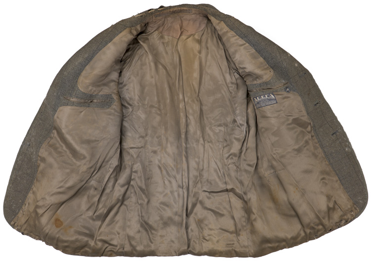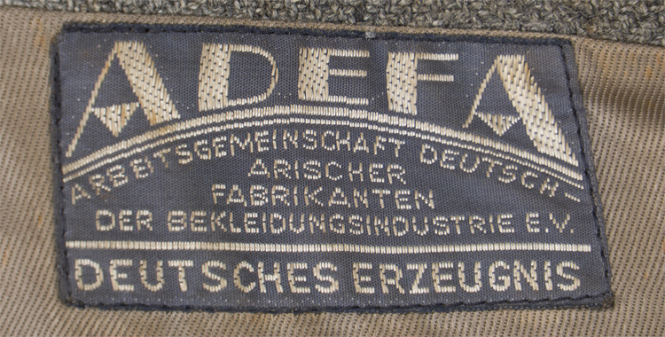 "ADEFA" mans coat/jacket. Jacket show loads of period wear and use. Would make for a great late war display!