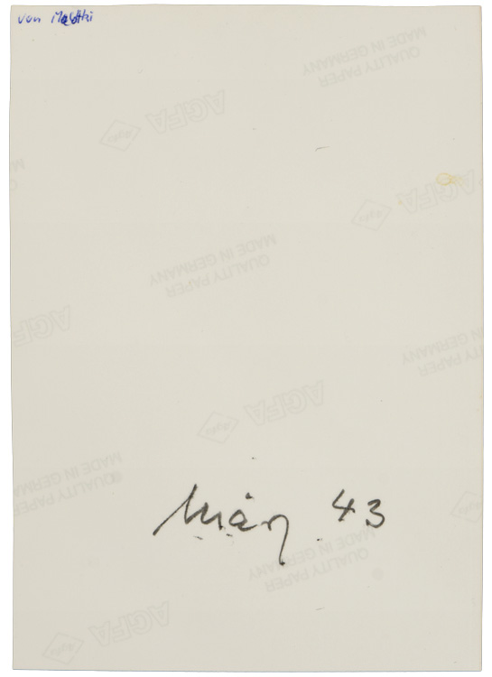 A 10.5cm x 15cm modern printed photograph with signature in marker to the front. A date of "Mai 43" is handwritten to the reverse. Wolfgang von Malotki (Thank you Robert for the ID)