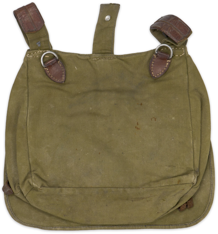 BACKGROUND: The standard issue M31 haversack, commonly referred to as the "breadbag", was based on the M1887 haversack and was adopted by the Wehrmacht as well as a wide variety of uniformed and non uniformed political and paramilitary organizations in 1931. The main variation in breadbags used by political and para military personnel as opposed to Wehrmacht personnel was the color. The breadbag was designed to carry rations, eating utensils and other assorted personal items.