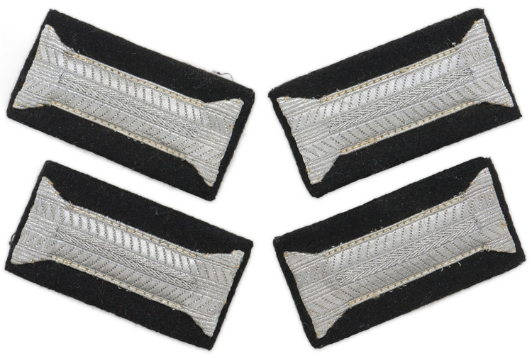 BACKGROUND: The M35 dress tunic was introduced for wear by all ranks on June 29TH 1935 as the walking out, parade and ceremonial dress with the piped, stone grey long pants. The design of the M35 dress tunic was based on the Imperial German army’s service tunic but was a different color and generally of much higher quality. Originally all personnel were issued two M35 dress tunics but manufacture was discontinued in late 1939 or early 1940 and was to be reinstated at the successful conclusion of the war. Regulations of March 21ST 1940 stated that the M35 dress tunics that were no longer suitable for dress wear were to be modified and reissued to personnel of the replacement and reserve units for every day wear. The different branches of service within the army were allocated a specific, identifying, waffenfarbe, (Branch of Service Color), with black being chosen for Pionier, (Combat Engineer), personnel. On the M35 dress tunic the waffenfarbe was generally displayed on the edge of the front closure panels, the collar facings, the shoulder straps/boards and the collar tabs and the cuff facings.