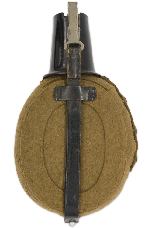 BACKGROUND: Introduced in 1931 the standard issue M31 canteen was based on the WWI M1893 and M1907 canteens with minor modifications. Originally the M31 canteens were manufactured in aluminum but later as the aluminum was required for other more critically essential items the canteens began to be manufactured in steel. In late 1940 with the impending German entrance into the North African campaign the standard brown felt cover and leather retaining straps and carrying harness of the M31 canteen were altered to an olive drab felt cover and web straps for longer wear in the tropical climate. Another variant, developed in late 1941, was the replacement of the felt covers with a plastic impregnated wood covering for better durability. When issued the canteens came with an integral carrying straps and harness and regulations prescribed the assorted manners in which the canteen was to be carried with the most common form being to secure it to the bread bag suspended from the load carrying waist belt although other methods were also utilized. With potable fluids being such an essential item for an individuals well-being the canteen must be considered as a very important piece of personal kit.