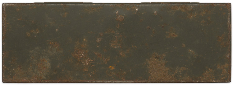 Weapons maintenance was of utmost importance to sustain effective results in combat. To ensure proper maintenance of the weapons specially trained Unterwaffenmeister’s, (Weapons Maintenance Sergeants), were assigned to all Infantry units. These Unterwaffenmeister’s were equipped with a specific set of tools enabling them to perform field repairs and maintenance on all the basic Infantry weapons.PHYSICAL DESCRIPTION: Feldgrau painted metal tin. 18cm x 6.5cm x 3cm.