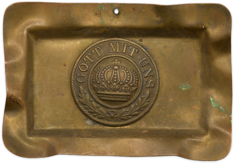 Brass ashtray with central motif from a Prussian belt buckle. 10.5cm X 8cm.