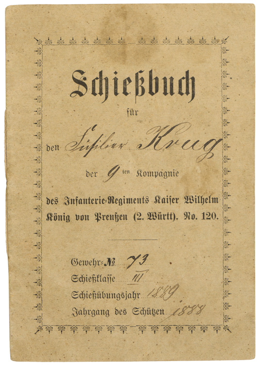 A 9.5cm x 13.5cm, soft cover booklet with handwritten information to the front cover and some interior pages.