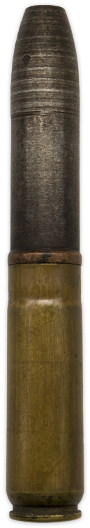 20x70mm RB practice cartridge (Übungsgeschoß). The case was manufactured by Potz & Sand in 1918. The projectile was manufactured in 1918. Used in the Becker Type M2 and Type M3 automatic cannons.