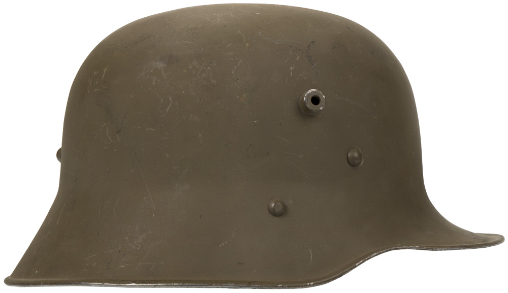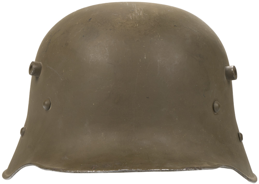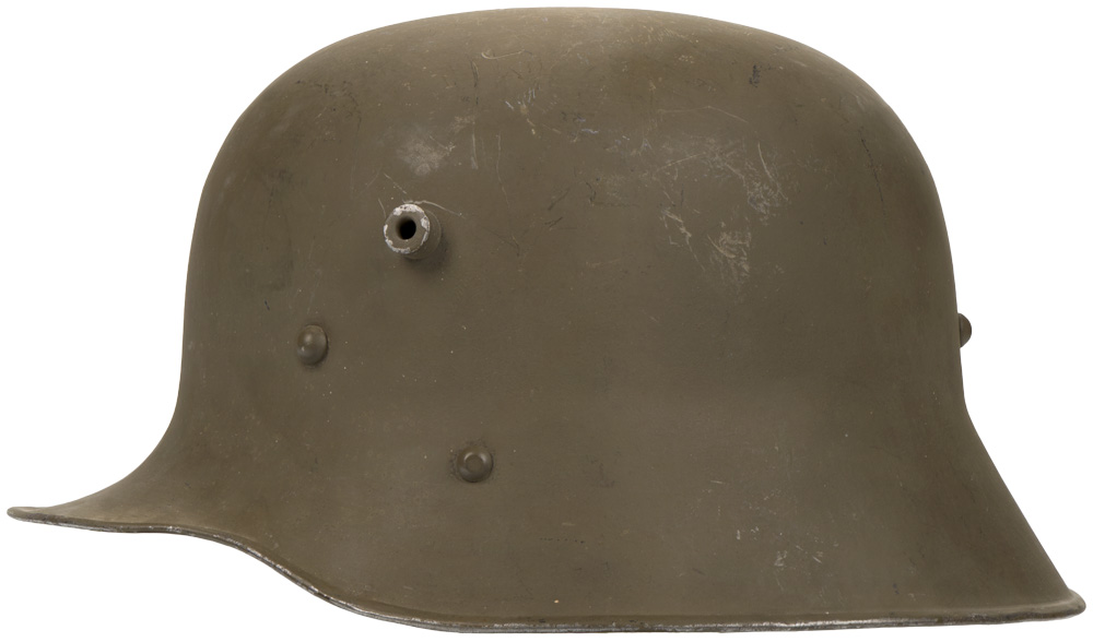 BACKGROUND: The first "modern" steel helmets were introduced by the French army in early 1915 and were shortly followed by the British army later that year. With plans on the drawing board, experimental helmets in the field, ("Gaede" helmet), and some captured French and British helmets the German army began tests for their own steel helmet at the Kummersdorf Proving Grounds in November, and in the field in December 1915. An acceptable pattern was developed and approved and production began at Eisen und Hüttenwerke, AG Thale/Harz, in the spring of 1916. These first modern M16 helmets evolved into the M18 helmets by the end of WWI. The Austrian M17 was almost identical to the German version with the positioning of the chinstrap liner rivets being the most readily identifiable difference.