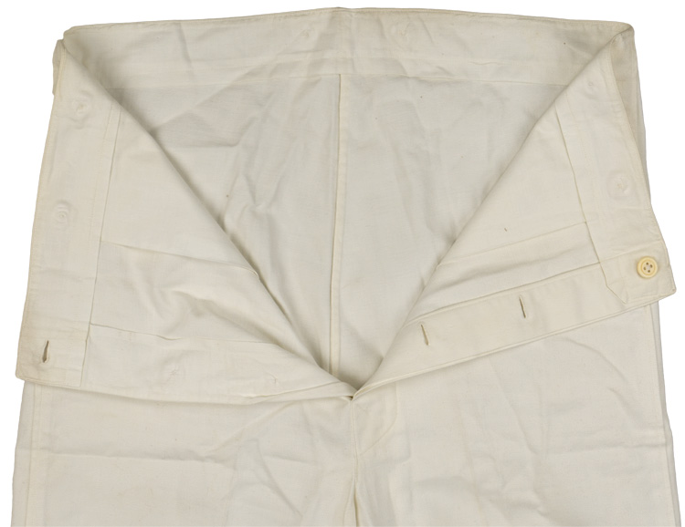A four piece grouping that includes the cap, tunic, shorts and dickie. The tunic has a chest that measures approximately 36" with a body measuring 23" (58.5cm) long. The short pants have a waist of 30" and an inseam of 10" (23cm).