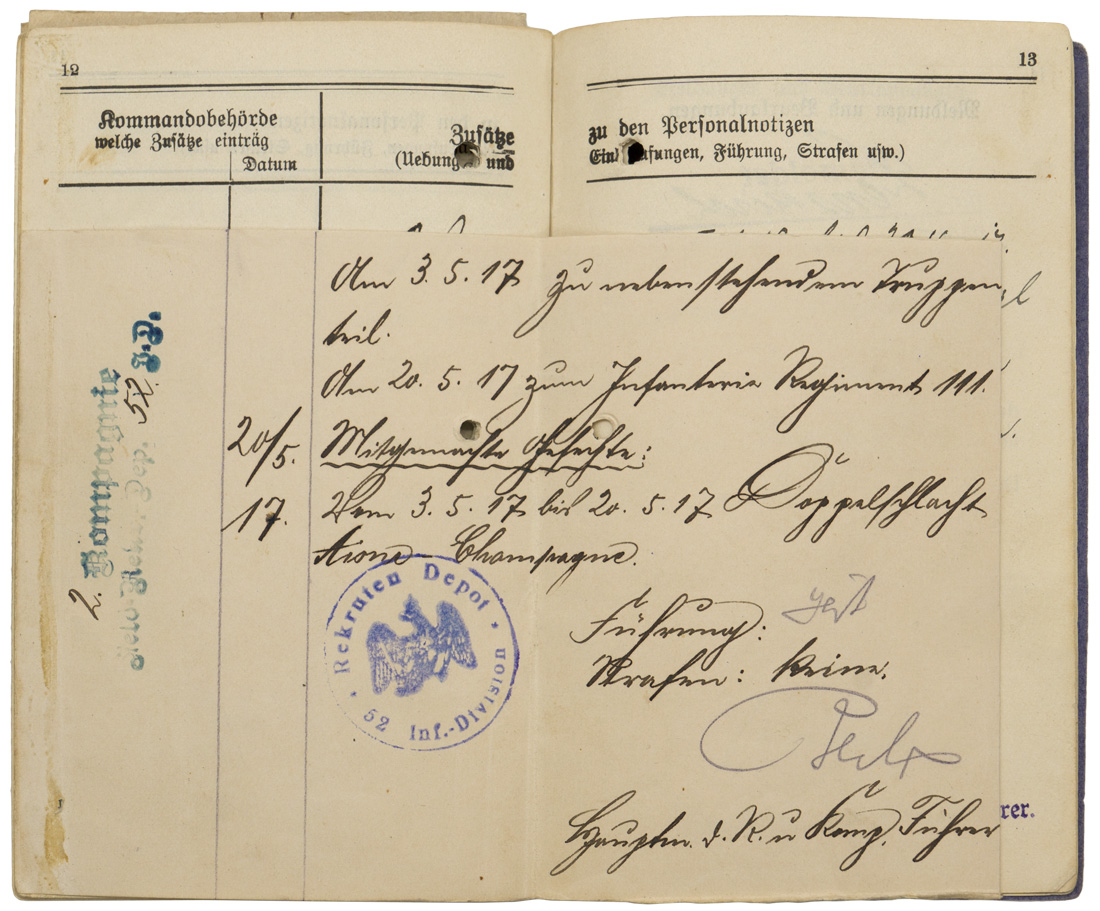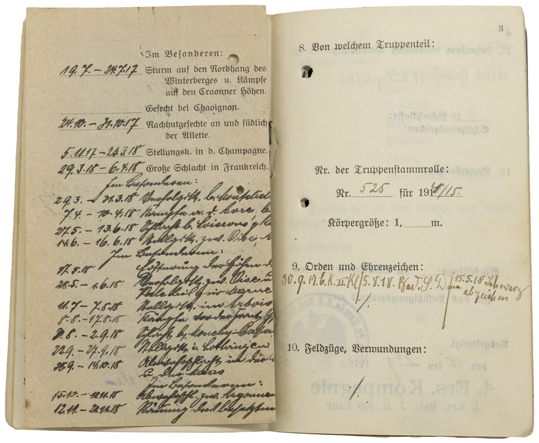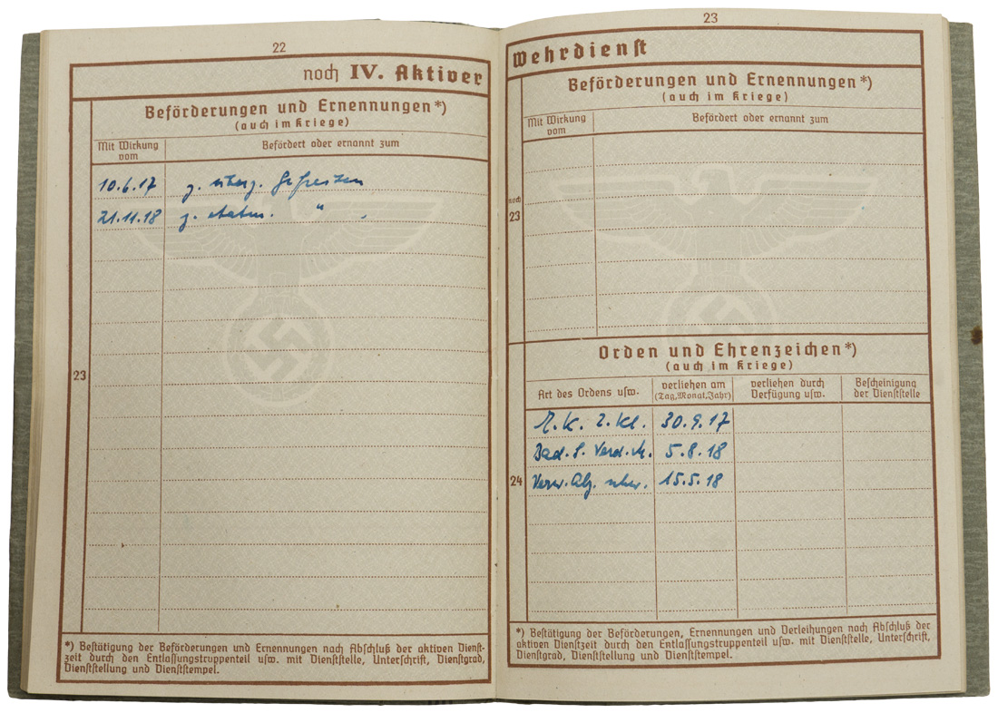 be a repair on the middle medal attachment), shoulder strap, dog tag, mailitarpass and also his Wehrpass from WW2. See photos for details.