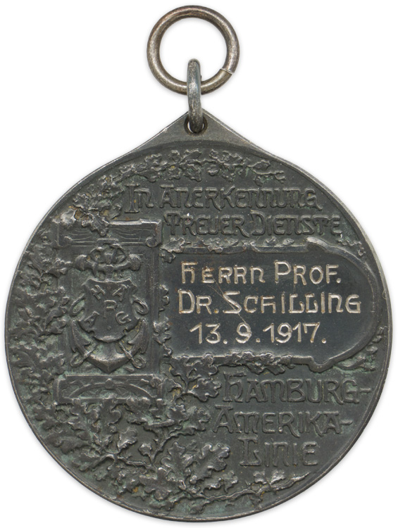 A 37mm diameter medallion engraved to "Herrn Prof. Dr. Scrigging 13.9.1917." Original suspension loops present. No ribbon included.