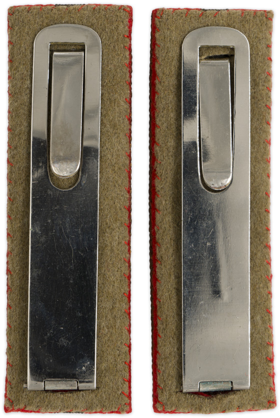 The "Type 5" (5th year of the Showa era, or, 1930) rank insignia were worn on the shoulders of the uniform, as that model’s stand up collar featured the arm of service colors and regimental numerals. Red wool tab with gold tress, twisted bullion trim and