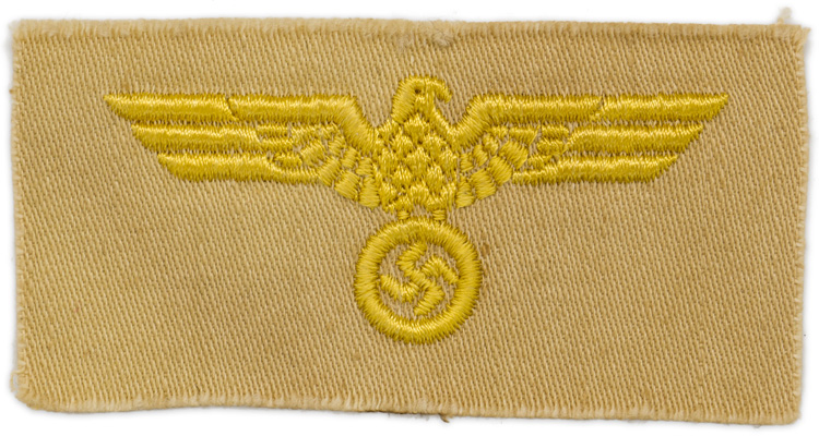 BACKGROUND: The Kriegsmarine adopted wear of the new national eagle on the front of the headgear and the right breast of the uniform on March 24TH 1934. The Kriegsmarine originally used white uniforms and headgear as their tropical dress. The Kriegsmarine developed two separate brown tropical uniforms, with one being introduced before the outbreak of the war and the second one during the war.