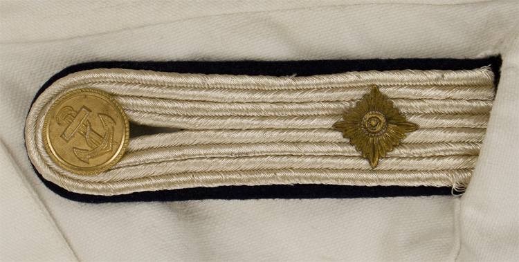 BACKGROUND: German Naval uniforms and headgear were based on traditional designs that date back to the creation of the Prussian Navy in 1848, and although the uniforms and headgear did evolve during the interim years, many items used during the Third Reich would still have been quite recognizable to the Imperial sailor. The German navy also had a long tradition of brown and white tropical/landing dress that was worn in hot climates with the white uniform also serving as a walking out dress. The tradition was continued through the Weimar era and in 1929 the Reichsmarine introduced new brown and white tropical/landing dress uniforms with stand-up collars. In 1937 the Kriegsmarine introduced new style brown and white tropical uniforms with lay down collars. With the impending entrance into the North African campaign in late 1940 the Kriegsmarine developed another new tropical brown uniform independently from the Heer and Luftwaffe, but retained the 1937 pattern white uniform. The tropical uniforms were classed as Sonderbekleidungsstücke, (Special Articles of Clothing), and were only issued to personnel serving in tropical climates. Officers and certain senior NCO ranks were responsible for purchasing their own uniforms and headgear and as a result were allotted a clothing allowance through the OKK, Offizier Kleiderkasse der Kriegsmarine, (Officer’s Clothing Account of the Navy). Although enlisted personnel were issued their uniforms and headgear from government supplies they were also permitted to purchase privately tailored items although the price may have been restrictive. Generally speaking officers bought nice quality, private purchase, uniform items but they could also choose to buy their uniforms directly from the military clothing depots. This example is the 1937 pattern, white tropical tunic.