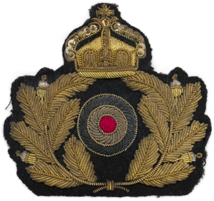 Beautiful hand embroidered Imperial oak leaf wreath, cockade and crown. The insignia is all super high quality hand embroidered silver & gold bullion wire construction mounted on a dark blue badge cloth/wool.
