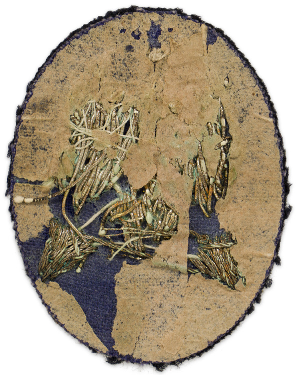 PHYSICAL DESCRIPTION: The Technical Officials, elevated grade career insignia consists of a roughly, 50mm tall, 40mm wide, vertically oval, navy blue wool base with a hand embroidered Wehrmacht pattern national eagle with down swept wings, clutching a canted swastika in it’s talons, in bright silver/aluminum wire and bullion threads. The eagle is positioned above two, career grade, identifying triangles, also hand embroidered in bright, silver/aluminum wire threads. The reverse of the insignia still has its original protective tan paper backing semi-intact. (Ex Philippe Gillain Collection)