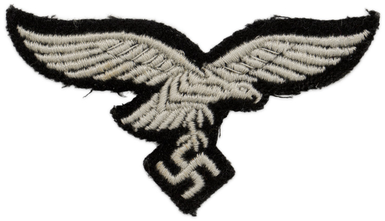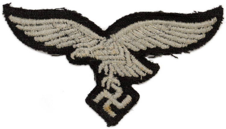BACKGROUND: The Luftwaffe pattern national eagle was originally introduced for wear by Fliegerschaft, (Pilot Base), personnel of the DLV, Deutscher Luftsportsverband, (German Air Sports Association), the clandestine, civilian, forerunner of the Luftwaffe on August 18TH 1934 and was officially adopted for wear by all Luftwaffe personnel on March 1ST 1935. The original first pattern national eagle was utilized until a, slightly modified, second pattern national eagle was introduced in late 1936 or early 1937. Regulations dictated that the national eagle was to be worn on almost all headgear and on the right breast of almost all uniforms with a few minor exceptions. Officers ranks generally utilized hand embroidered national eagles as opposed to the machine embroidered breast and cap eagles or stamped metal visor cap eagles as utilized by EM/NCO ranks. Of Note: Machine woven and even metal alloy national eagles were also utilized in limited quantities. Also Of Note: Officer holding ranks of Generalmajor to Generalfeldmarschall and Reichsmarschall Göring utilized gold colored accoutrements including breast eagles as opposed to the silver versions worn by all other ranks. Personnel serving in Panzer units of the Hermann Göring Division were issued with the black Panzer wrap around tunic and the black overseas and M43 field caps. Airfield Ground crew personnel were also issued with a black overseas work cap. The national eagle worn on the black headgear was identical to the standard issue eagle but was worked on a black background as opposed to the regular Luftwaffe blue/grey background.