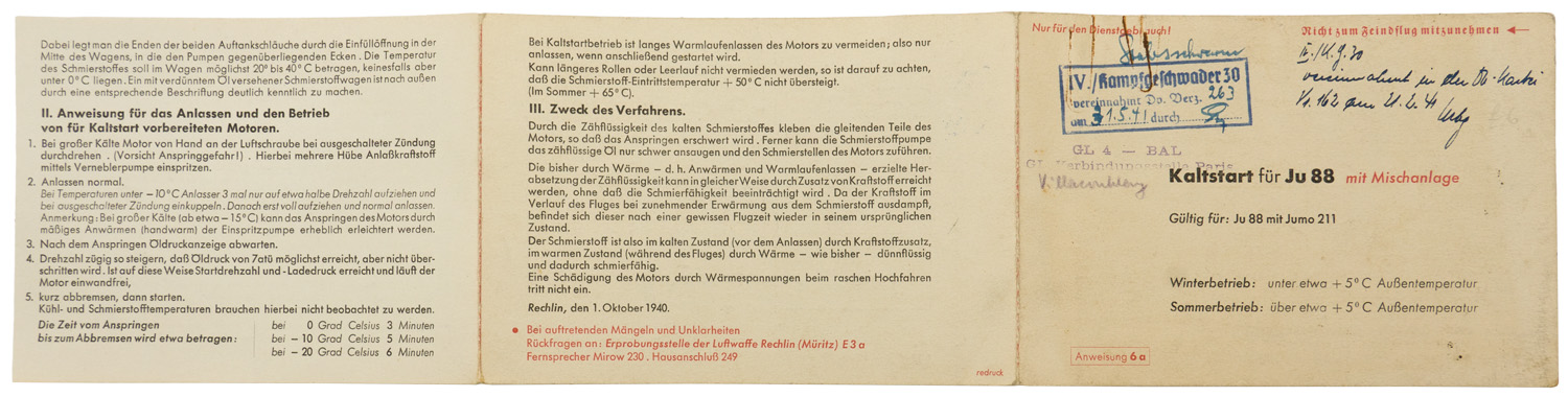 A 10.5cm x 15cm, tri-fold booklet. Kampfgeschwader 30 (KG 30)