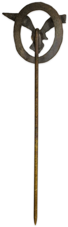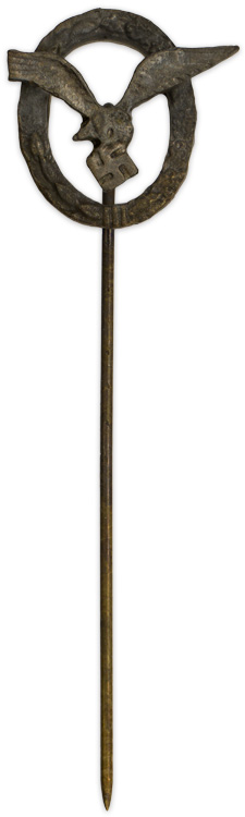 PHYSICAL DESCRIPTION: Nice quality, die struck alloy construction, two piece, miniature, exact replica Pilot’s Badge lapel pin. Wreath is 16mm tall. Complete with its original 50mm rifled pin.