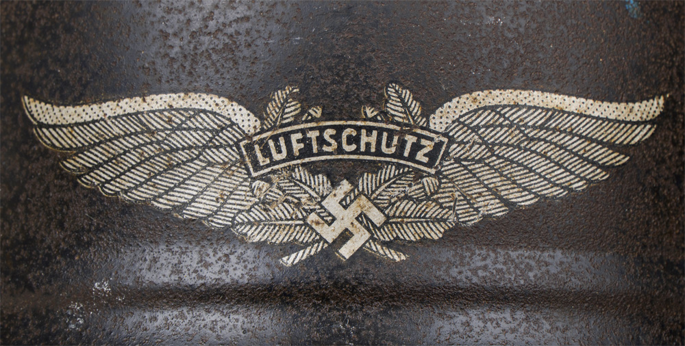 BACKGROUND: Formed in late 1932 the Deutsches Luftschutzverband, (German Air Protection League), was a voluntary organization designed to provide civil air raid protection in large civilian centers. Shortly after Hitler ascension to power the Deutsches Luftschutzverband was restructured and placed under the supervision of the Reichsluftfahrtministerium, (National Air Ministry), under the control of Hermann Göring. On April 29TH 1933 the Deutsches Luftschutzverband was renamed RLB, Reichs Luftschutz Bund, (National Air Raid Protection League) and was given status as an official national organization tasked with all aspects of civil air raid defence. The RLB remained a voluntary organization with a small cadre of paid, full-time uniformed officials to oversee the organizations functions until June 1935 when obligatory service was introduced. Only the most basic uniform and equipment items were supplied to the cadre personnel, with the rest having to be bought personally by members. On September 26TH 1938 a specific helmet for RLB personnel was introduced that incorporated a raised horizontal "bead" between the visors and crown. These helmets commonly called the "Gladiator" style were supplemented with M35, M40 and M42 helmets that also incorporated a raised horizontal "bead" between the visors and crown. The Luftschutz also utilized a variety of captured helmets.