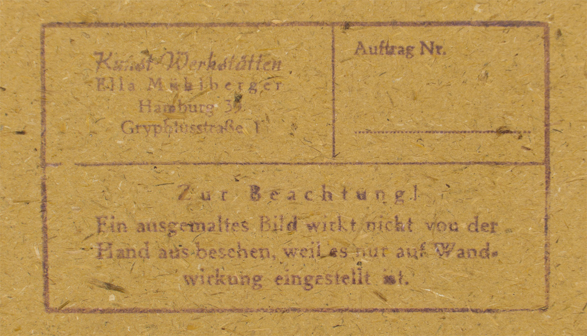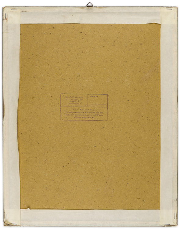 A 31cm x 40cm framed 22cm x 28.5cm EM’s black and white portrait. The frame is scratched to the top. The reverse has a cardboard backing that is stamped.