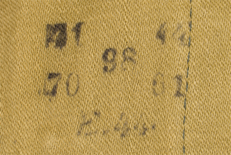 PHYSICAL DESCRIPTION: Enlisted pattern upgraded to an officer. Nice original officers insignia all hand applied to the tunic. Under the officer eagle you have see the stitch holes where the em’s eagle once was. All original "removable buttons". Nice marking with a "B44" depot.