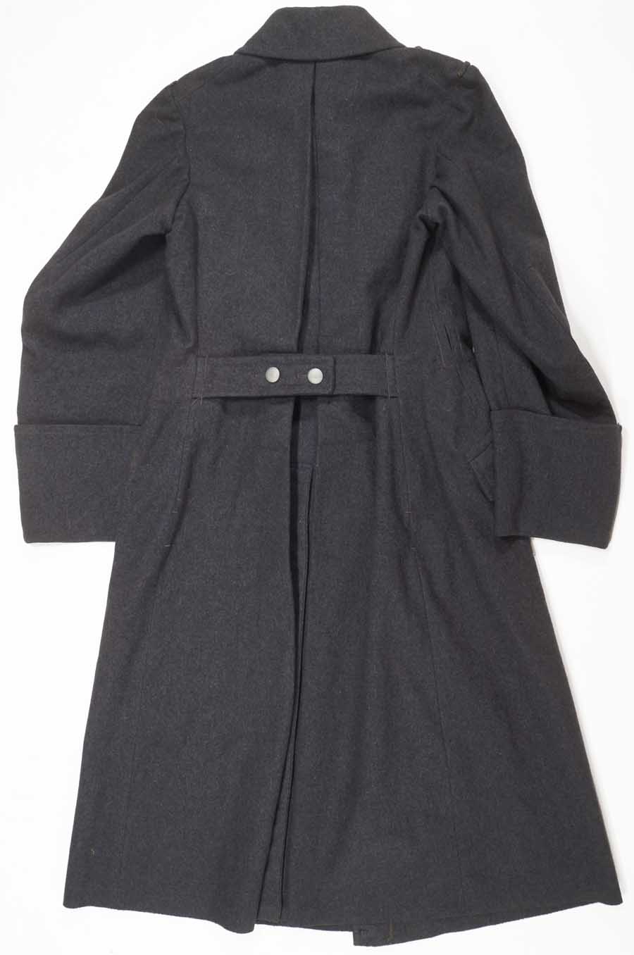 BACKGROUND: The Greatcoat was an essential uniform item worn by all ranks, with minor variations, and followed the basic design of the Imperial German army’s greatcoat. The Luftwaffe version of the greatcoat was first introduced by the DLV, Deutscher Luftsport Verband, (German Air Sports League), the clandestine, civil forerunner of the Luftwaffe, and was adopted for wear in the Luftwaffe on its inception in March 1935. During the war the standard issue greatcoat underwent a few minor modifications. The early production greatcoats came with button holes on both the left and right front closure panels which allowed the coat to be button up either left or right handedly and small metal hooks positioned at both sides of the bottom front closure panels, and additional small metal hooks positioned at both sides of the reverse tail skirt vent with corresponding thread loops situated at the side seams just below the waistline designed to allow the wearer to hook the tail skirt up out of the way when mounted or on the march. Both of these features were abolished by regulations of March 20TH 1940 although they were not strictly adhered to. Originally the buttons on the greatcoats for the ranks of Soldat to Oberst were silver finished while the ranks of Generalmajor to Reichsmarschall wore gilt finished buttons but just prior to the war buttons for the ranks of Soldat to Stabsfeldwebel were altered to a blue/grey finish. Unlike the army Luftwaffe personnel utilized collar tabs on their greatcoats until regulations of May 29TH 1942 abolished the collar tabs for EM/NCO personnel with the stipulation that they be removed by October 1ST 1942. Additional regulations of January 4TH 1943 reinstated the use of collar tabs on the greatcoat for EM/NCO personnel serving with Herman Göring Wacht Regiment Berlin, (Guard Regiment), and the Führer-Flakabteilung, (Führer Anti-Aircraft Battalion). Besides the standard greatcoat the Luftwaffe also introduced a heavy surcoat with an additional blanket lining for stationary personnel and drivers of opened cab vehicles and on October 17TH 1942 the Luftwaffe introduced the universal greatcoat that was intended to replace both the standard greatcoat and the surcoat but the change over was never complete and the standard greatcoat was worn through-out the war. Officers and certain senior NCO ranks were responsible for purchasing their own uniforms and as a result were allotted a clothing allowance through the Luftwaffe’s Verkaufsabteilung, (Air-Force Sales Department), system. The Officers and certain senior NCO’s could choose to purchase their uniforms from the armed forces clothing depots or to privately purchase garments of higher quality. Although enlisted personnel were issued their uniforms from government supplies they were also permitted to purchase privately tailored uniforms although the price may have been restrictive.