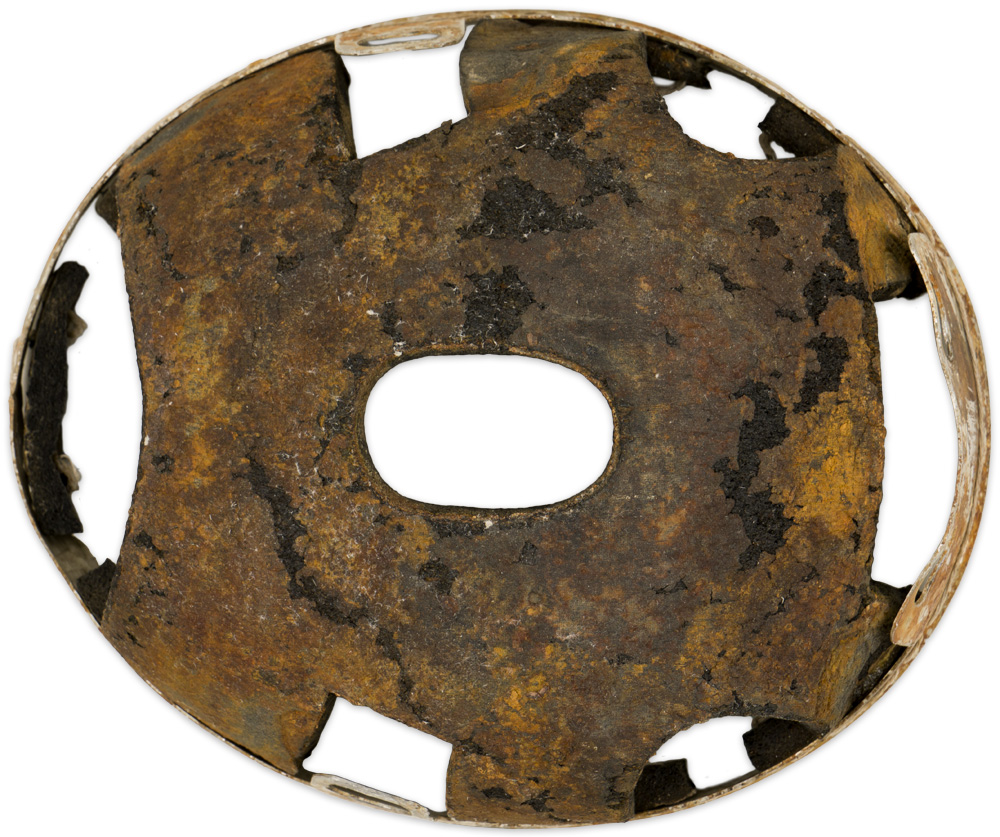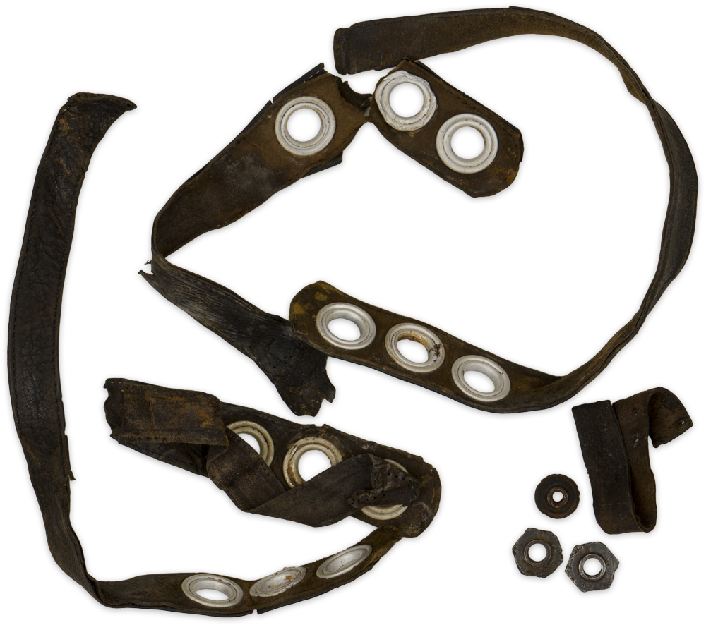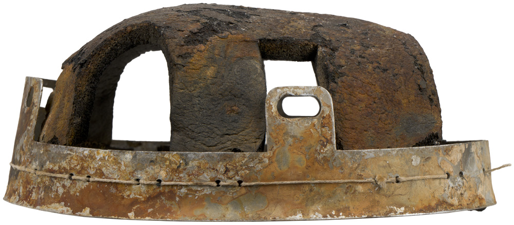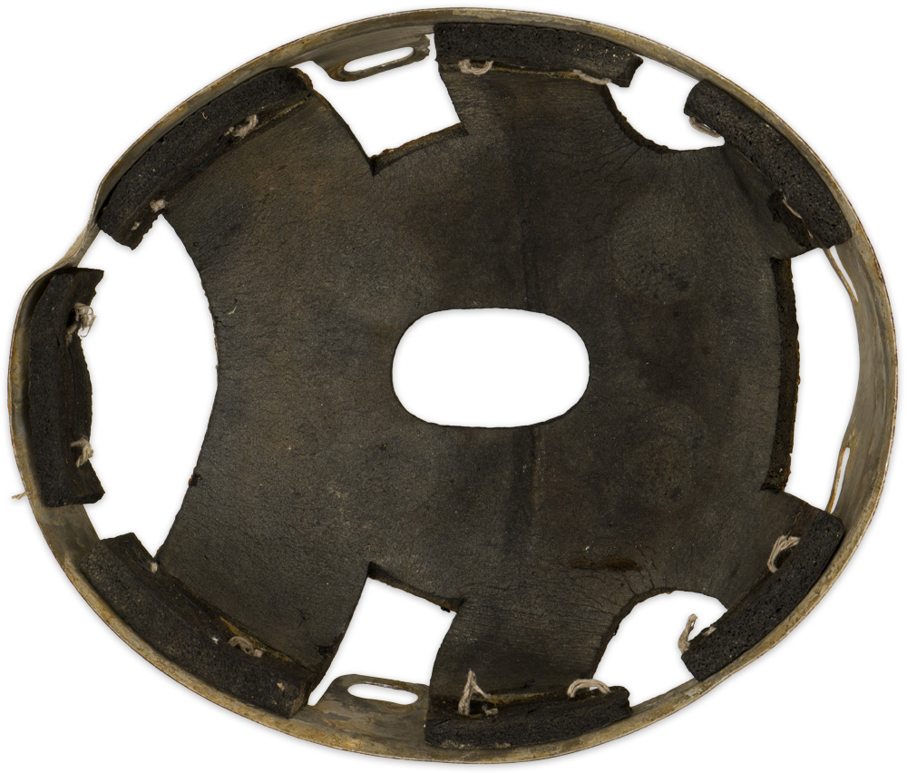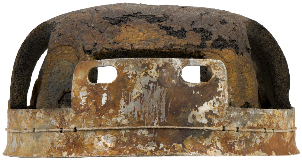 Battle damaged. Some original chinstrap parts included. Good for restoration project.