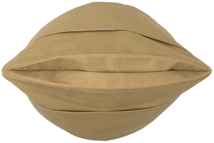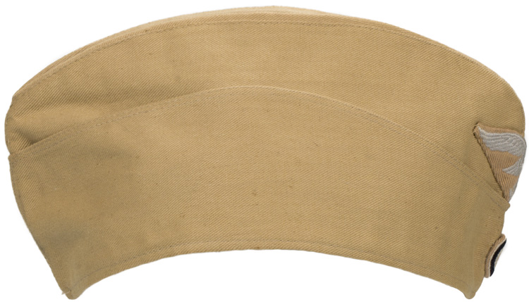 BACKGROUND: In late 1940, with the impending German entrance into the North African campaign, the German army quickly developed and issued tropical uniforms and equipment in time for DAK, Deutsches Afrika Korps, (German Africa Corps), personnel’s arrival in Tripoli in February 1941. At the same time the Luftwaffe also developed and introduced their own version of the tropical uniform, headgear and equipment independently from the other branches of service. Originally the tropical uniforms were only intended for wear in North Africa but that was later expanded to include personnel serving in southern areas of continental Europe during the summer months, (May 1ST to September 30TH). The tropical overseas cap was based on the standard continental overseas cap but in a different color and material. The tropical overseas caps were piped in the same manner as the continental style overseas caps, and later the M43 field caps with no piping for EM/NCO ranks, silver piping for Officer’s ranks and gilt piping for General Officer’s ranks.