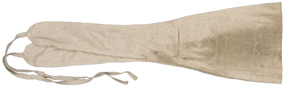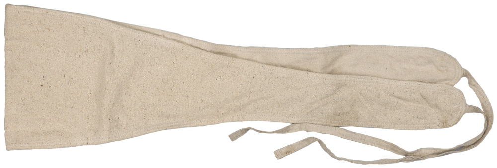 PHYSICAL DESCRIPTION: The woven, dual ply, white wool construction, belt like, abdomen/kidney warmer is roughly 125cm long with an, 25cm wide, horizontally oval central section tapering down to roughly, 9cm wide end sections. The central horizontally oval section has four square rows of reinforcement stitching and all the outside edges have dual rows of reinforcement stitching. The tapered end sections each have long wool tie tape to each end. One side of the central horizontally oval section has a small vertical slash. One end of the warmer would be inserted through the small vertical slash and the warmer would be wrapped around the wearers body and the tie tapes would be tied in the reverse. The warmer is in overall very good condition with light age toning. Nice Luftwaffe LBA marking with a 1939 date.