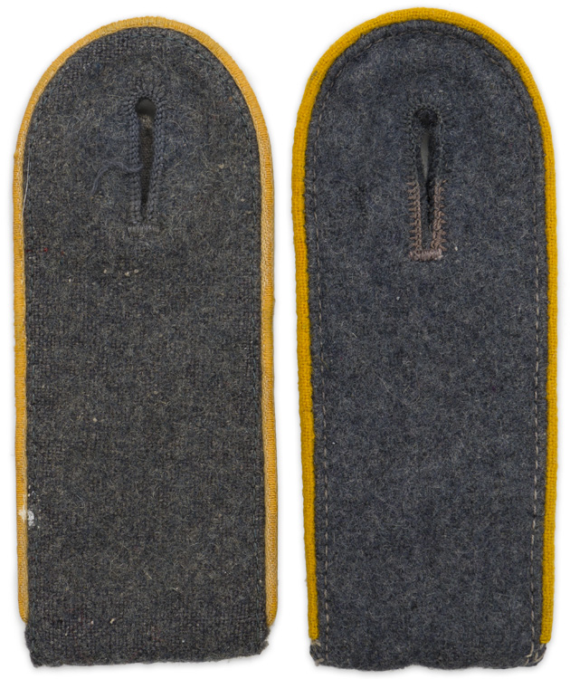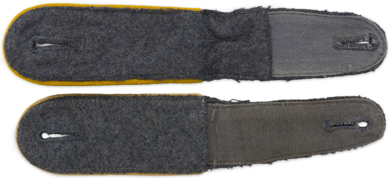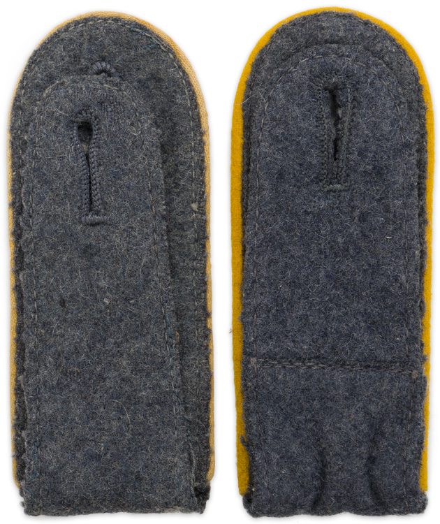PHYSICAL DESCRIPTION: Luftwaffe blue/grey wool construction, slip on shoulder straps with bright golden yellow wool waffenfarbe piping.