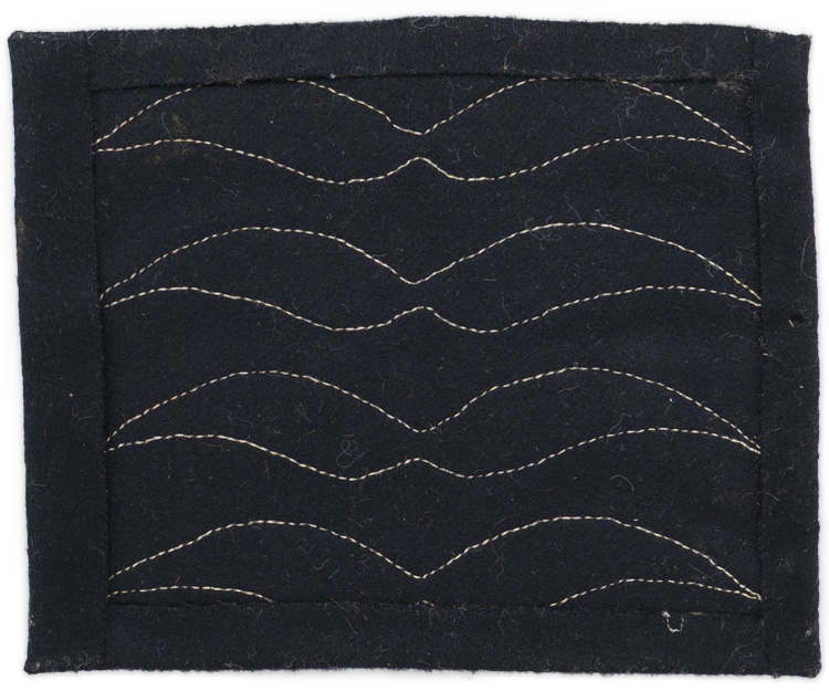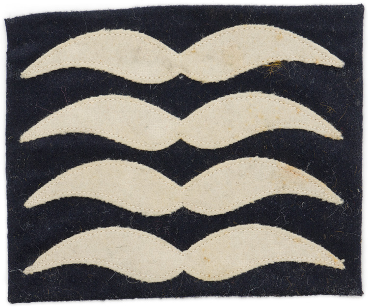 PHYSICAL DESCRIPTION: Rank insignia, for wear on clothing that normally would not have any rank insignia, (Flight suits, Protective clothing, etc.), was officially introduced in December 1935, to replace two earlier patterns that had been introduced in January 1934 and May 1935. Insignia in the form of a 8.5cm x 11cm grey wool base with four cut out white wool stylized "wings", machine stitched to one side. Insignia indicates the rank of Oberfeldwebel.
