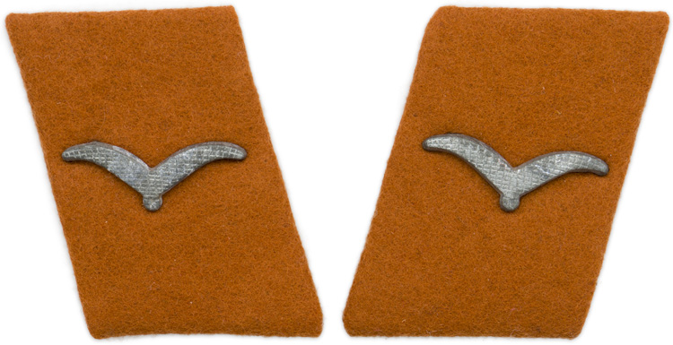 BACKGROUND: The Reichsluftwaffe was official established on February 26TH 1935 as the third branch of service of the Armed Forces. On March 9TH 1935 the formation of the new Reichsluftwaffe was announced to the foreign press and on March 16TH conscription was reintroduced for all three branches of service. On May 21ST 1935 the Reichsluftwaffe designation was altered to Luftwaffe. Collar tabs were adopted by the newly formed Luftwaffe on April 14TH 1935 and followed the basic pattern of the collar tabs that had been utilized by its earlier civilian forerunner the, DLV, Deutscher Luftsport Verband, (German Air Sports League). The collar tabs were worn in matching pairs and indicated the branch of service and rank of the wearer.