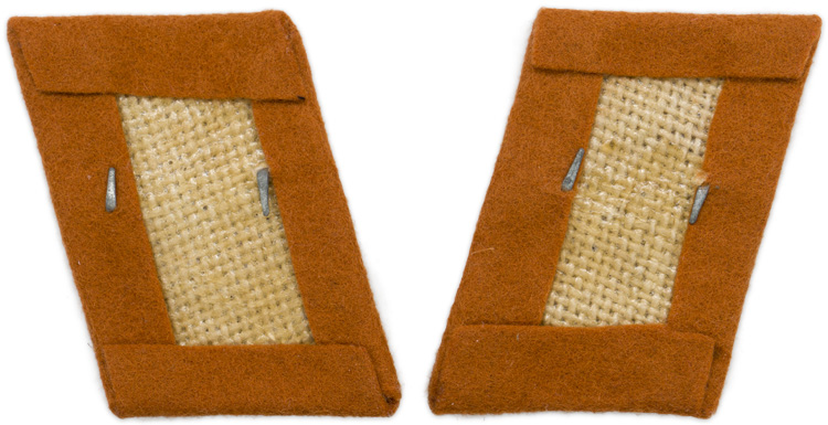 PHYSICAL DESCRIPTION: Light brown wool construction collar tabs mounted on buckram backings. Single rank gull to each.