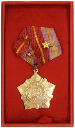 C037184 NORTH VIETNAMESE ORDER OF THE SOLDIER OF GLORY 3RD CLASS WITH CASE. |