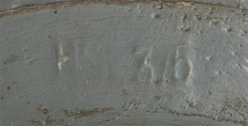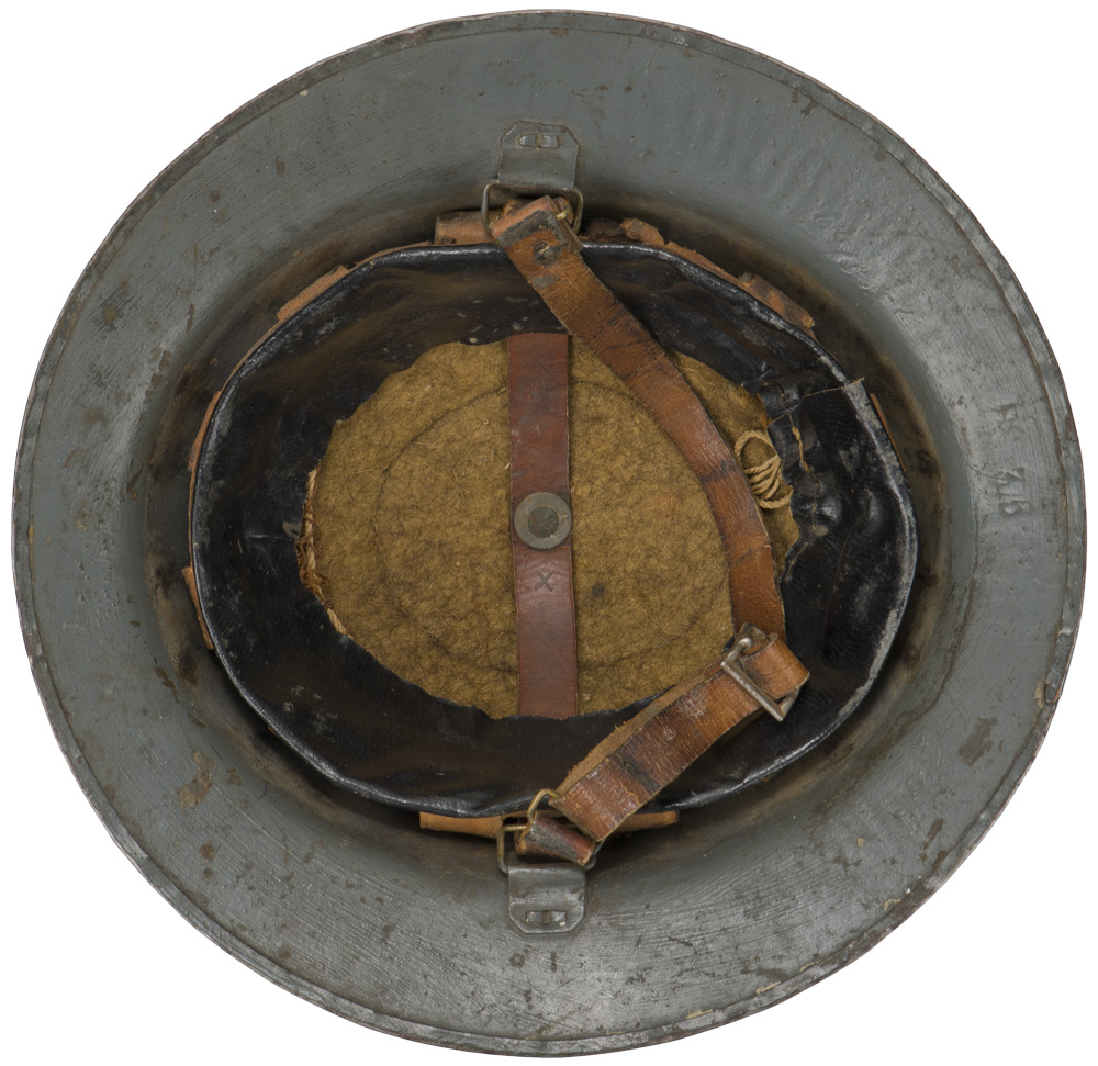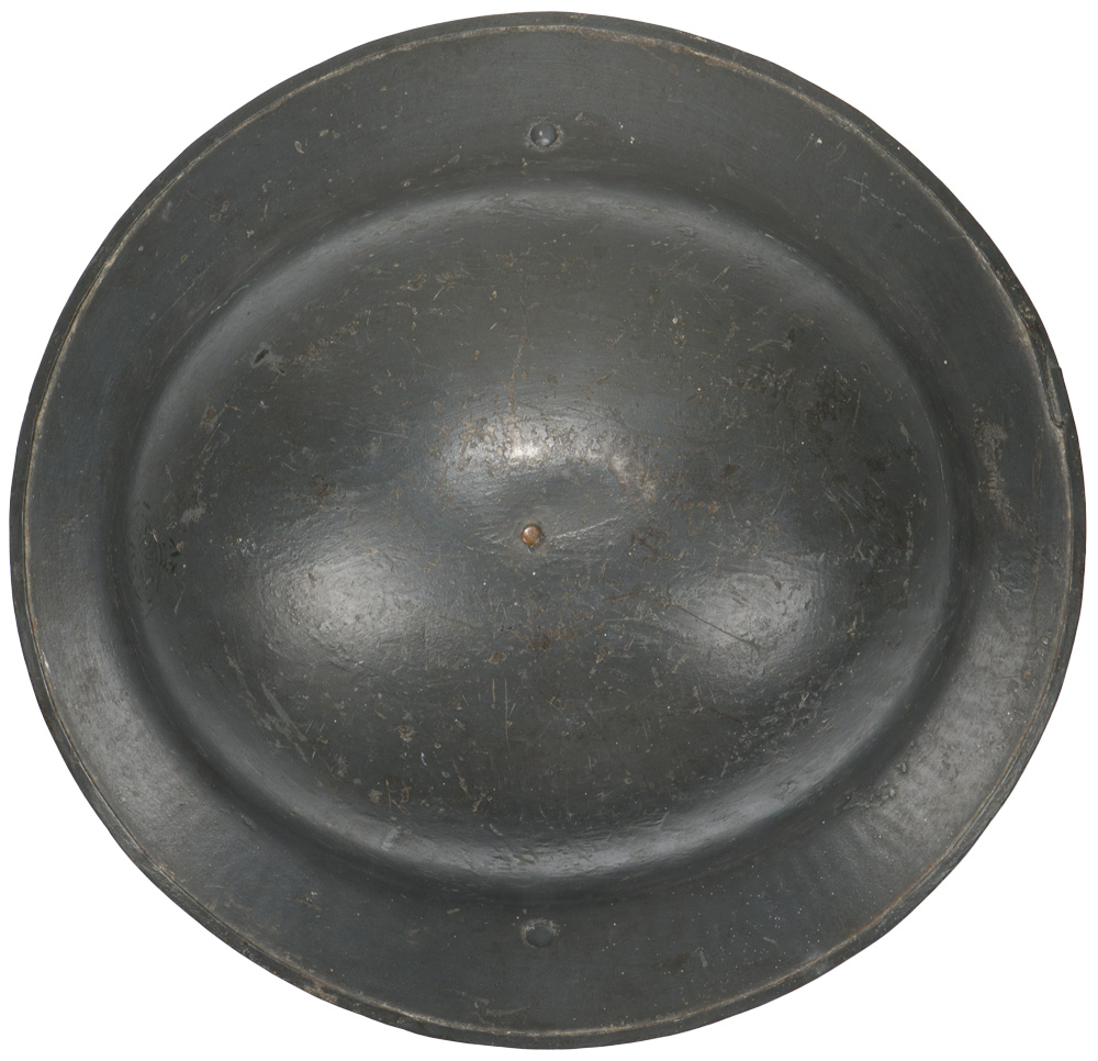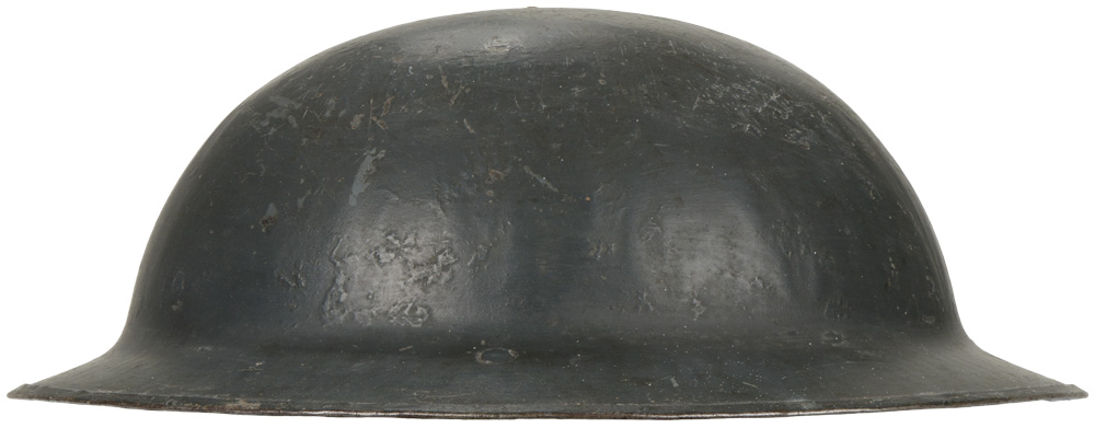 PHYSICAL DESCRIPTION: A second pattern (with a magnetic steel rim instead of a raw edge) Mark l non magnetic hardened manganese steel helmet. Nice complete liner and chinstrap system. To the underside of the rear brim of the helmet body is stamped "HS 375" being the steel supplier’s initial and the code numbers for the batch of steel the helmet was made from ("HS" [Hadfields Ltd. (Sheffield)]. Visible to the front is