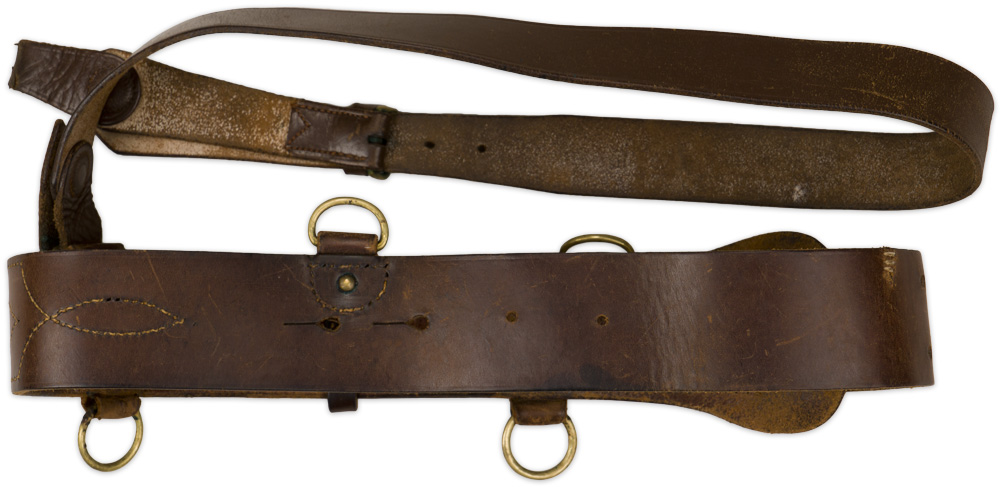 PHYSICAL DESCRIPTION: A "Sam Browne" harness assembly which consists of the belt and single cross strap. The belt is 104cm in length. Shows typical usage and wear.